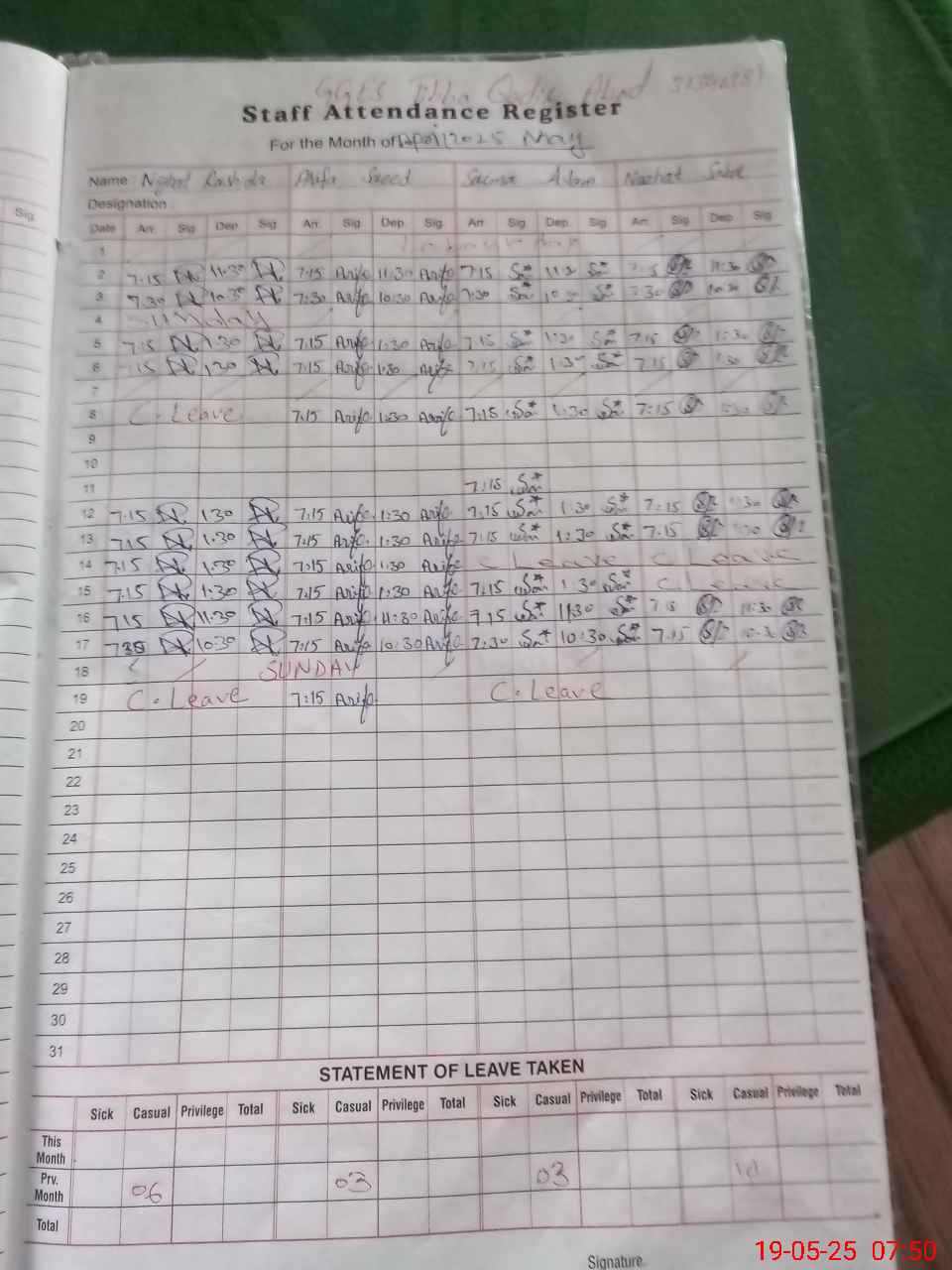 | 31**** | Gh**** Fa**** | PST | Regular | 2 | 0 | 0 | 0 | 0 | 0 | 0 | 0 | 2 | Casual |