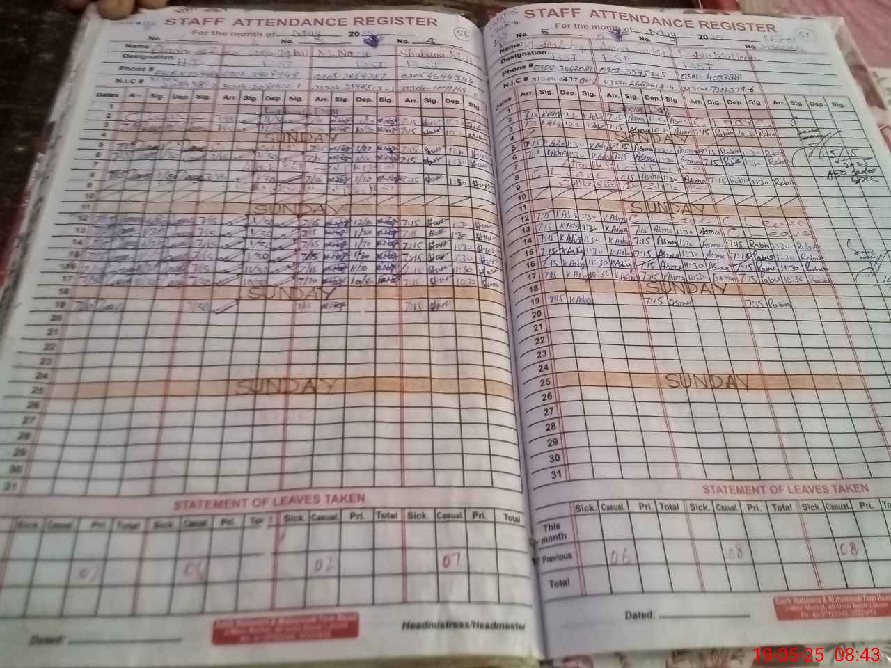 | CNIC | Full Name | Designation | R/C | Absence During Last Calender Month |