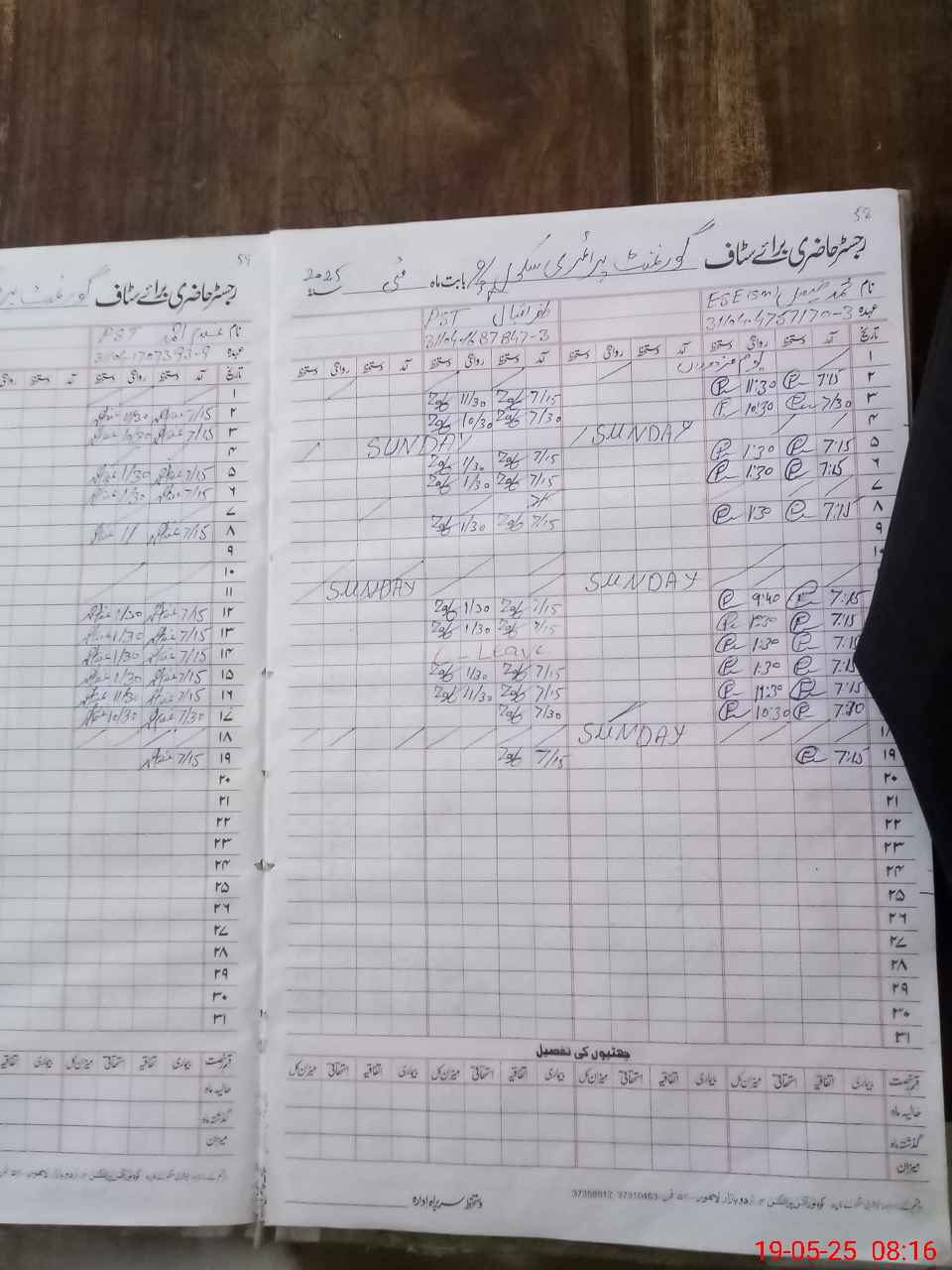 | CNIC | Full Name | Designation | R/C | Absence During Last Calender Month |