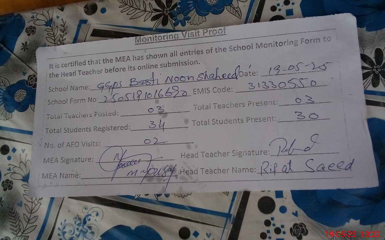 | EMIS Code: 31330550 | Name of School: GGPS BASTI NOON SHAHEED | |||