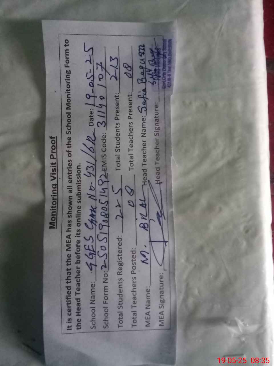 | EMIS Code: 31140107 | Name of School: GGES CHAK 431/6-R | |||