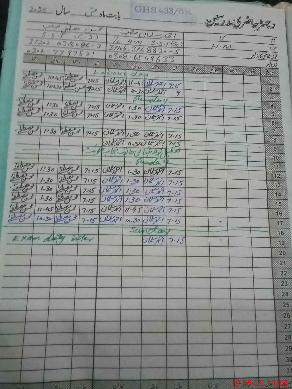 | 31**** | Ha**** Mu**** Aq**** UrRe**** | SST | Regular | 0 | 0 | 0 | 0 | 0 | 0 | 0 | 0 | 0 | Exam Duty |