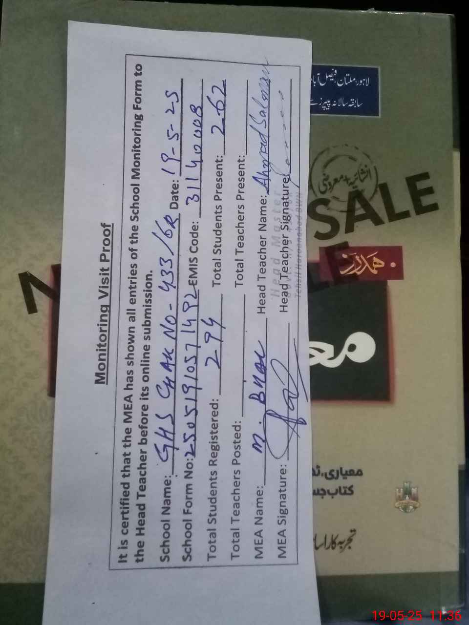 | EMIS Code: 31140008 | Name of School: GHS CHAK NO. 433/6-R | |||