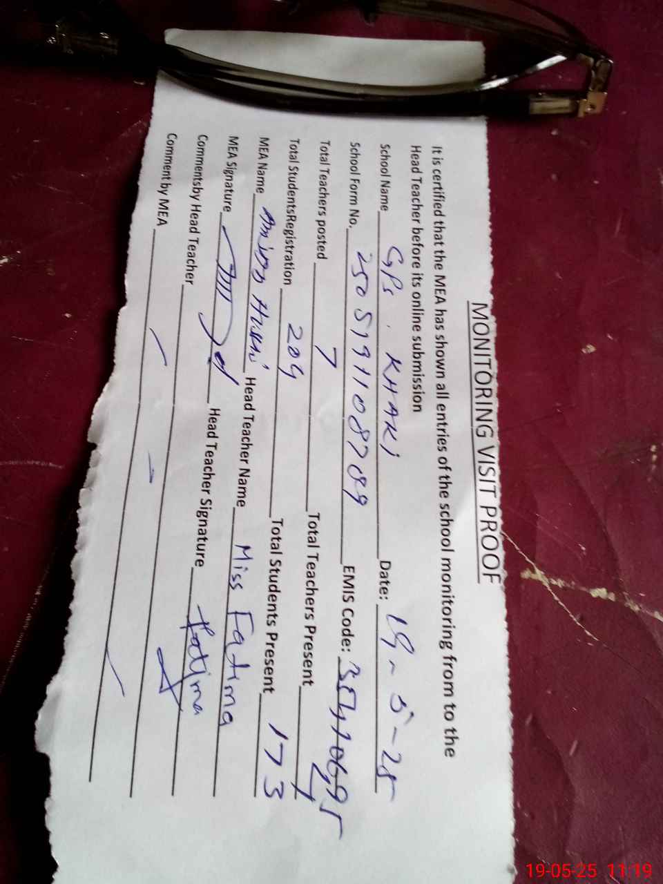 | EMIS Code: 35410695 | Name of School: GPS KHAKI (SHARQPUR KHURD) | |||