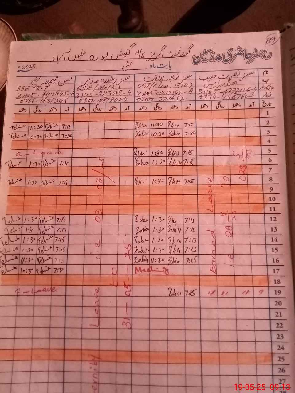 | Remarks (Use Separate Page if Required): Sse Tehmina absent from school with out official document proof JC Ghazanfer Ali Shahzad absent from school with out official leave | |||||