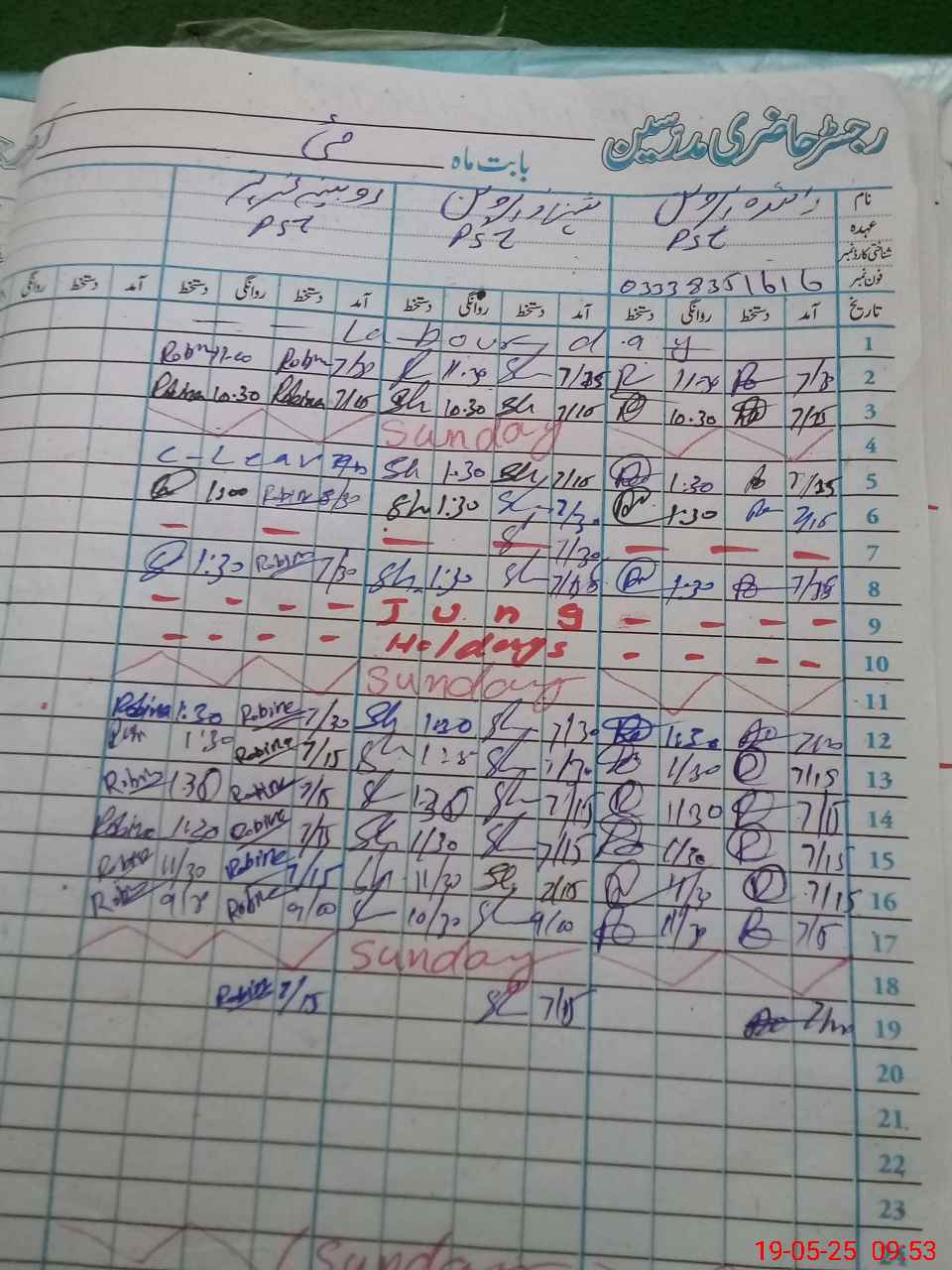 | CNIC | Full Name | Designation | R/C | Absence During Last Calender Month |