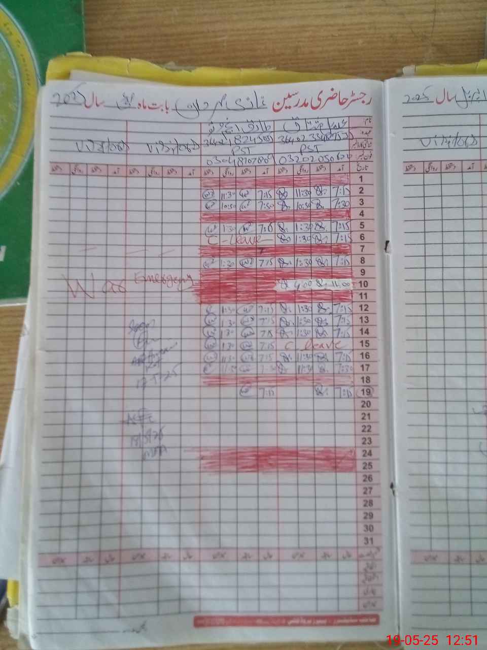 | CNIC | Full Name | Designation | R/C | Absence During Last Calender Month |