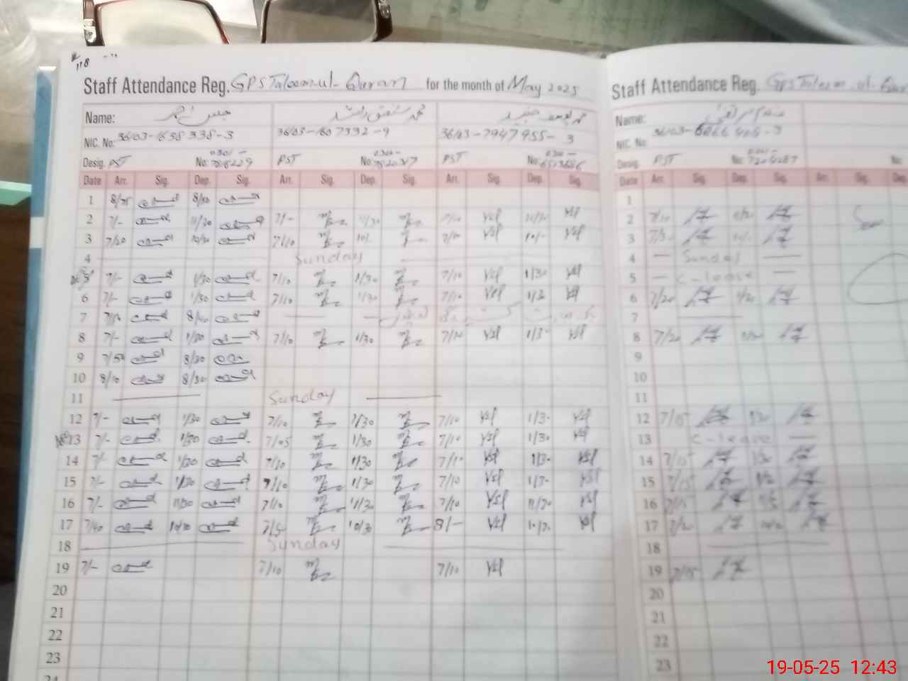 | CNIC | Full Name | Designation | R/C | Absence during last cal. month |