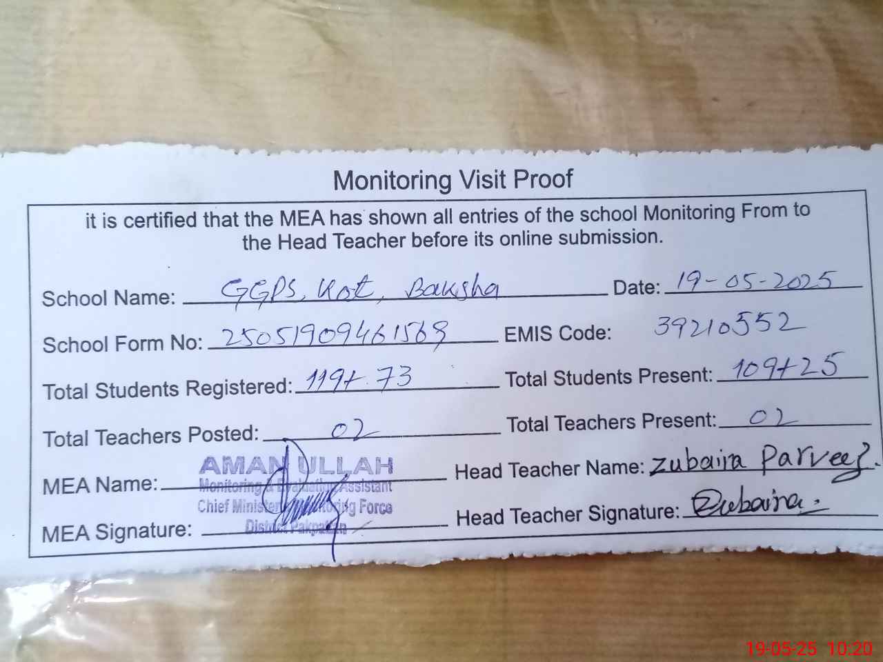 | EMIS Code: 39210552 | Name of School: GGPS KOT BAKHSHA | |||
