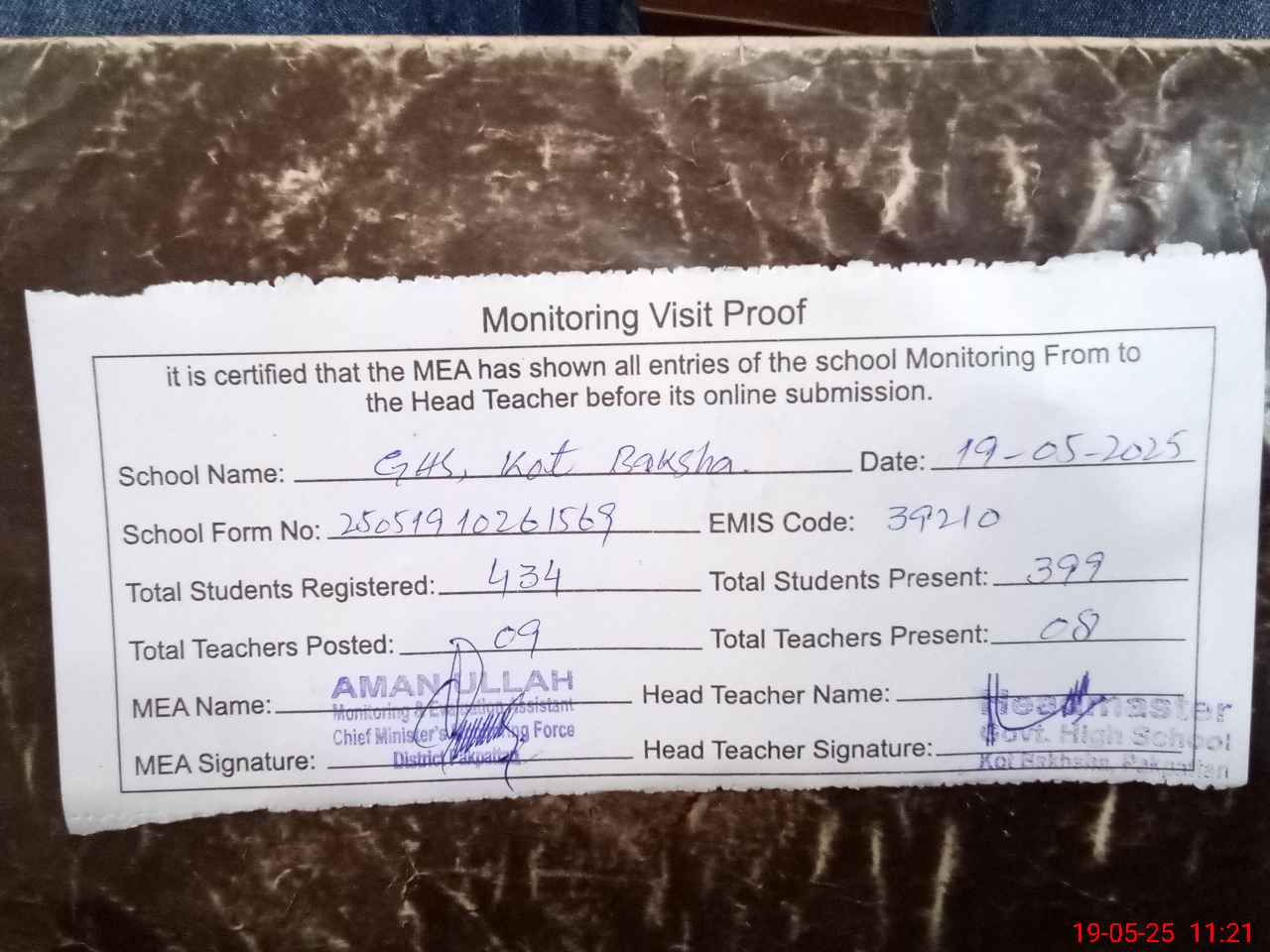 | EMIS Code: 39210152 | Name of School: GHS KOT BAKHSHA | |||