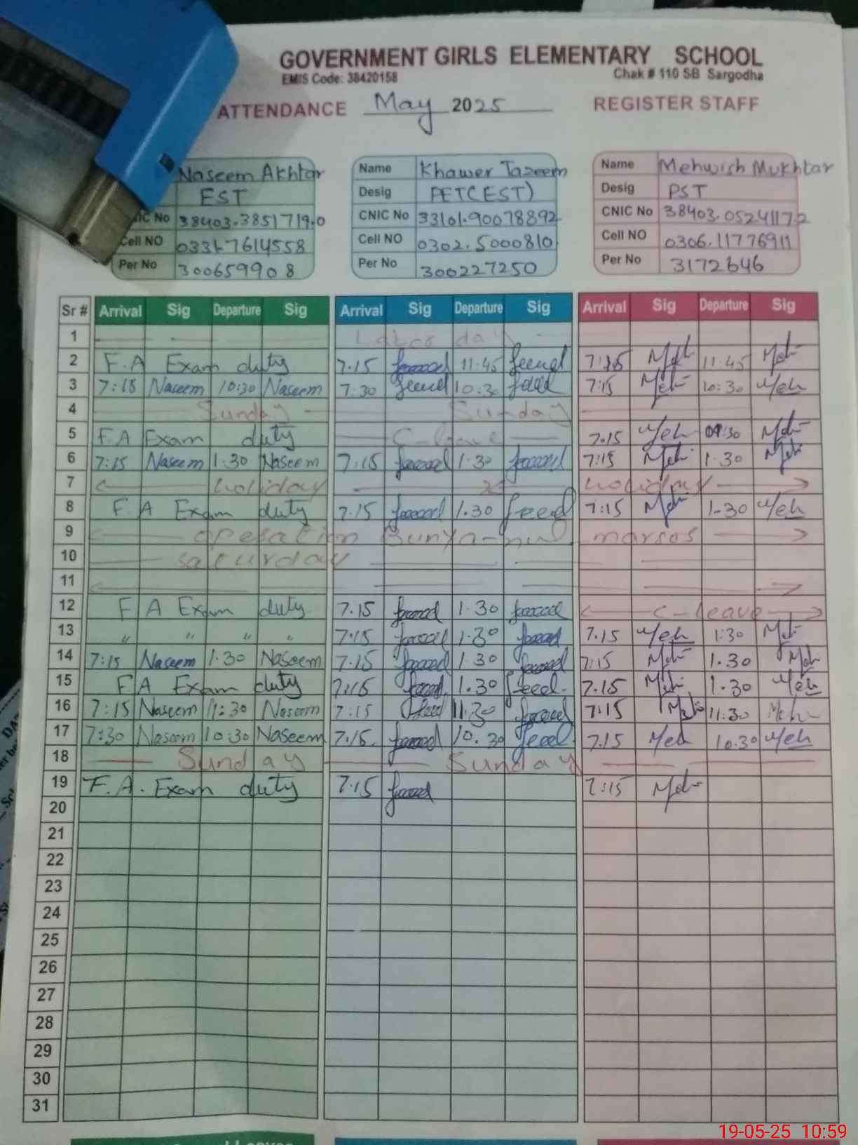 | 38**** | Na**** Ak**** | EST | Regular | 0 | 0 | 0 | 0 | 0 | 0 | 0 | 0 | 0 | Exam Duty |