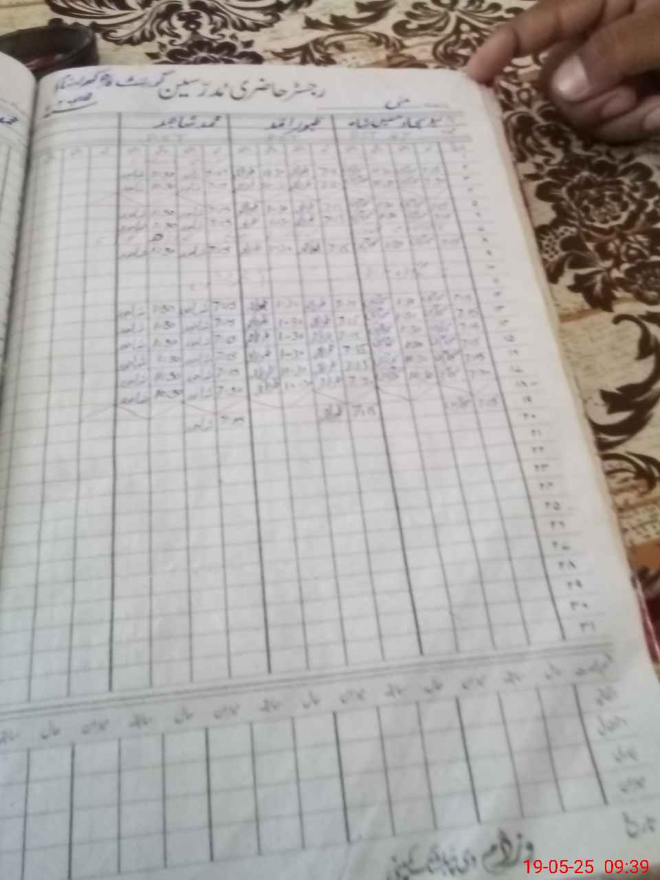 | CNIC | Full Name | Designation | R/C | Absence during last cal. month |