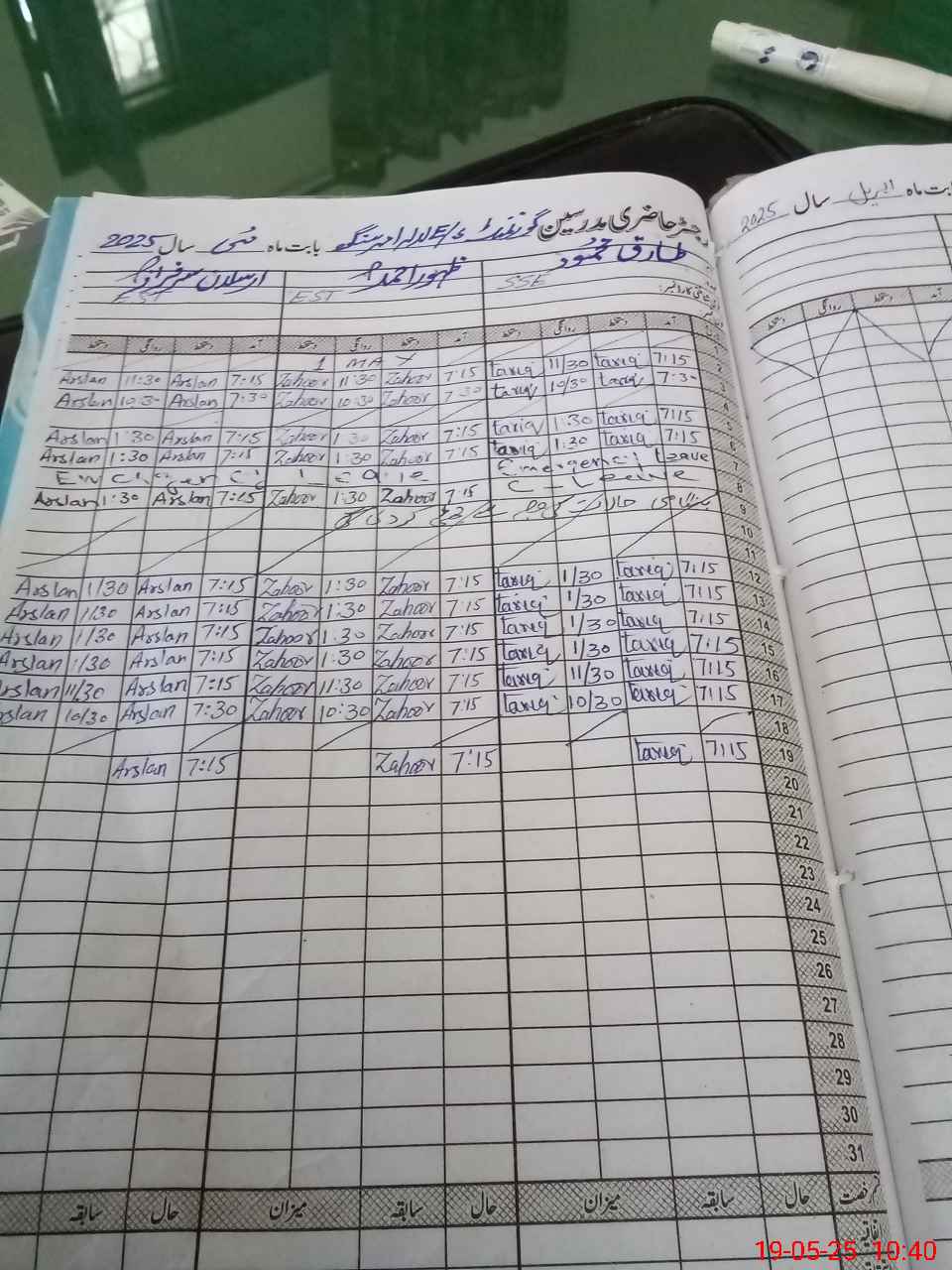 | Leave | Duty | Absent | Maternity | Medical | Ex- Pak |