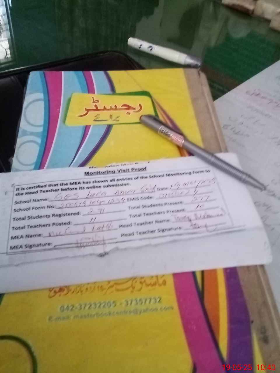 | Attendance Register | Head Teacher | MEA with School | Visit Proof |