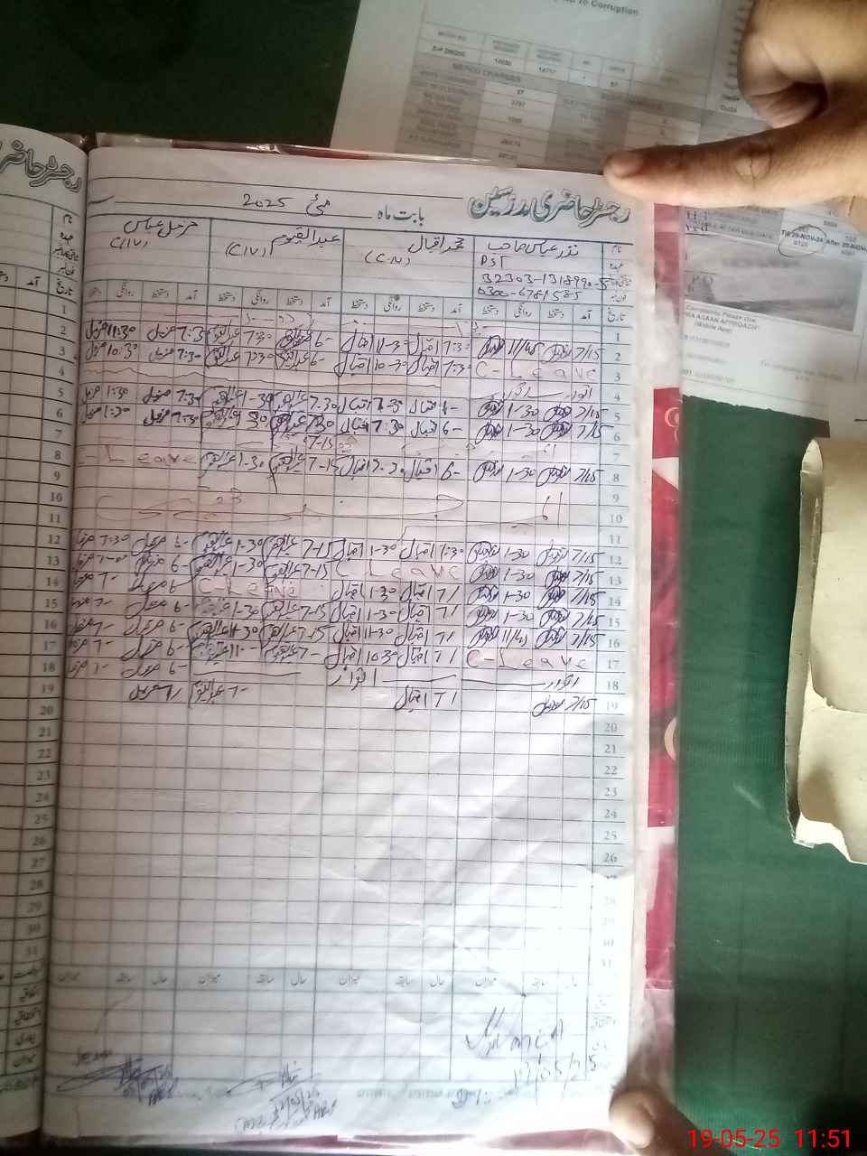 | CNIC | Full Name | Designation | R/C | Absence during last cal. month |