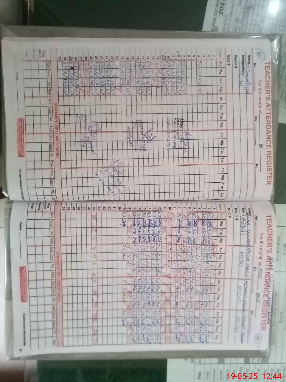 | CNIC | Full Name | Designation | R/C | Absence During Last Calender Month |