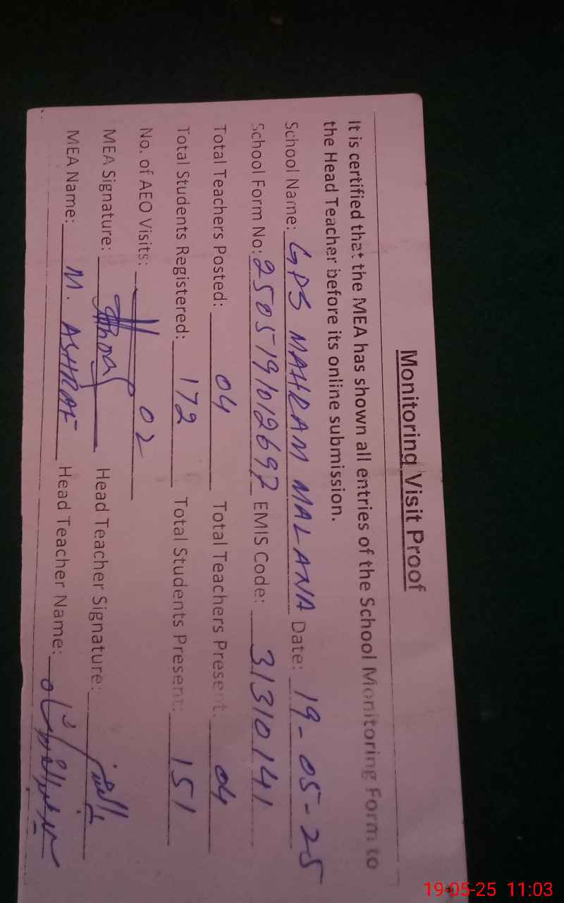 | EMIS Code: 31310141 | Name of School: GPS MOADIB MAHRAM MALLANA | |||