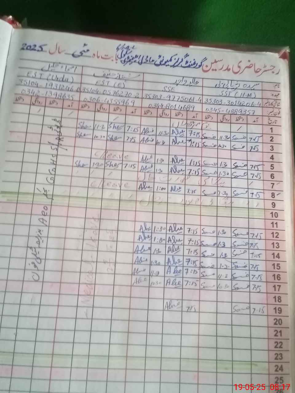 | Name: Sy**** Su**** Bi**** Designation: (School Headmaster's/Headmistress's) SST Gen Phone/Cell Number: 03**** |