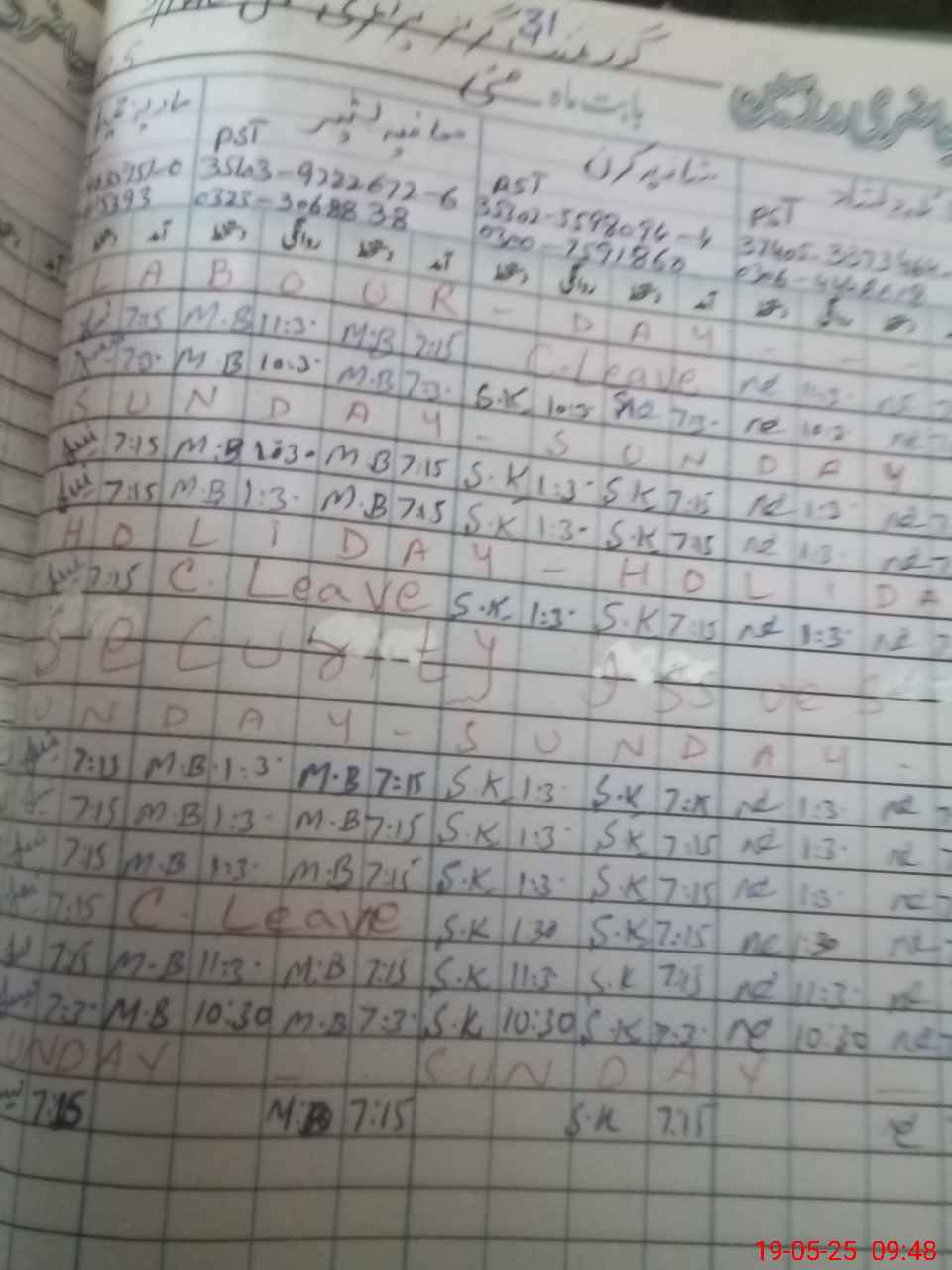 | Leave | Duty | Absent | Maternity | Medical | Ex- Pak |