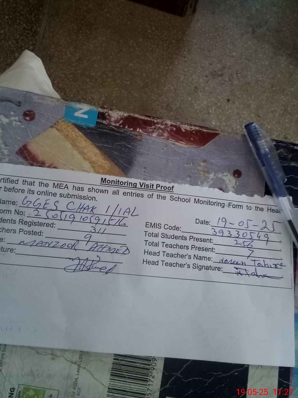 | EMIS Code: 39330549 | Name of School: GGES CHAK 1-1AL | |||