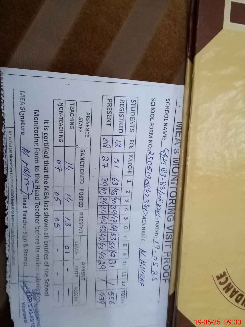 | EMIS Code: 36420100 | Name of School: GGHS 83-85/10-R, KHANEWAL | |||