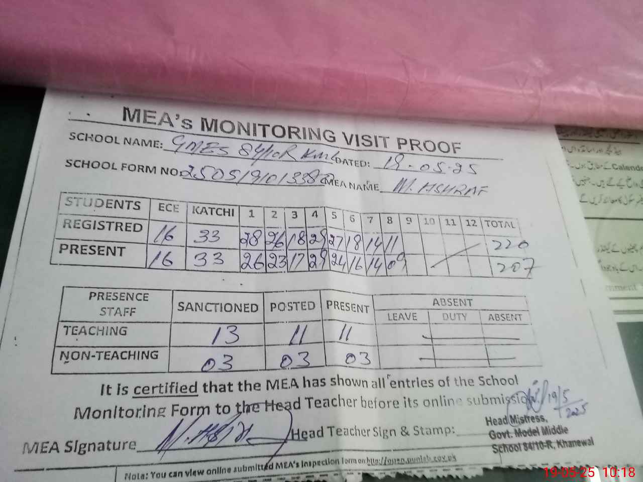 | Certified that this School was Inspected by the Undersigned MEA/DMO Today and the Information Stated Above is as Per Record. | |||||