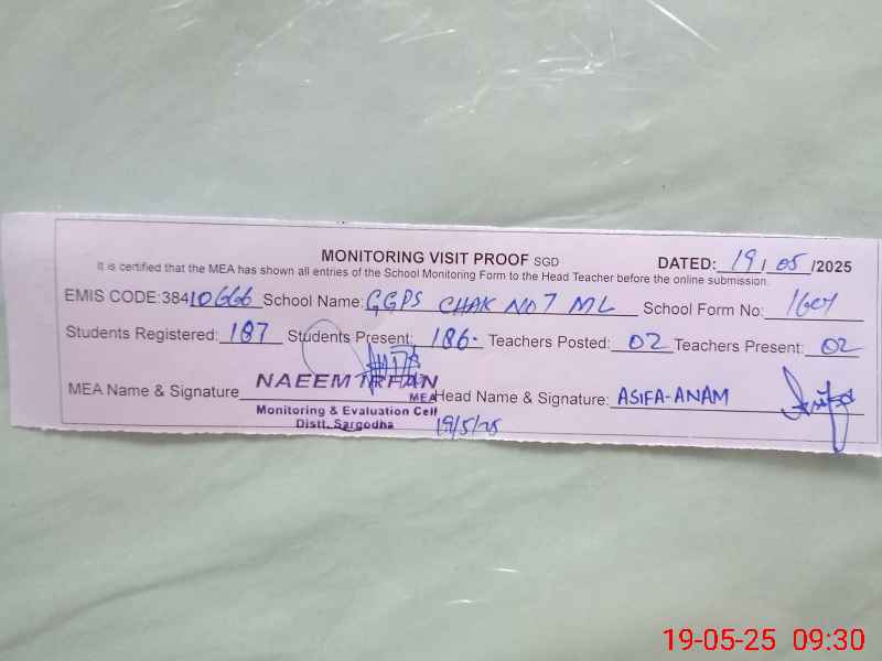 | EMIS Code: 38410666 | Name of School: GGPS CHAK NO.7 ML | |||