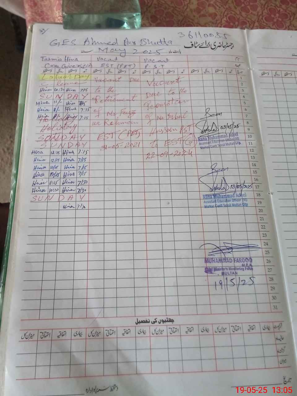 | 36**** | Mu**** Ta**** Sh**** Bu**** Ba**** | SST | Regular | 0 | 0 | 0 | 0 | 0 | 0 | 0 | 0 | 0 | Exam Duty |