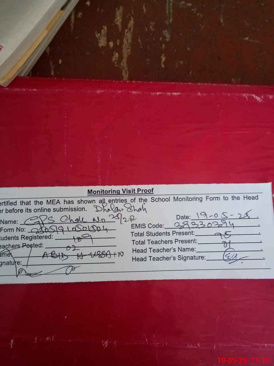 | EMIS Code: 39330394 | Name of School: GPS CHAK NO. 25/2-R DHOLAN SHAH | |||