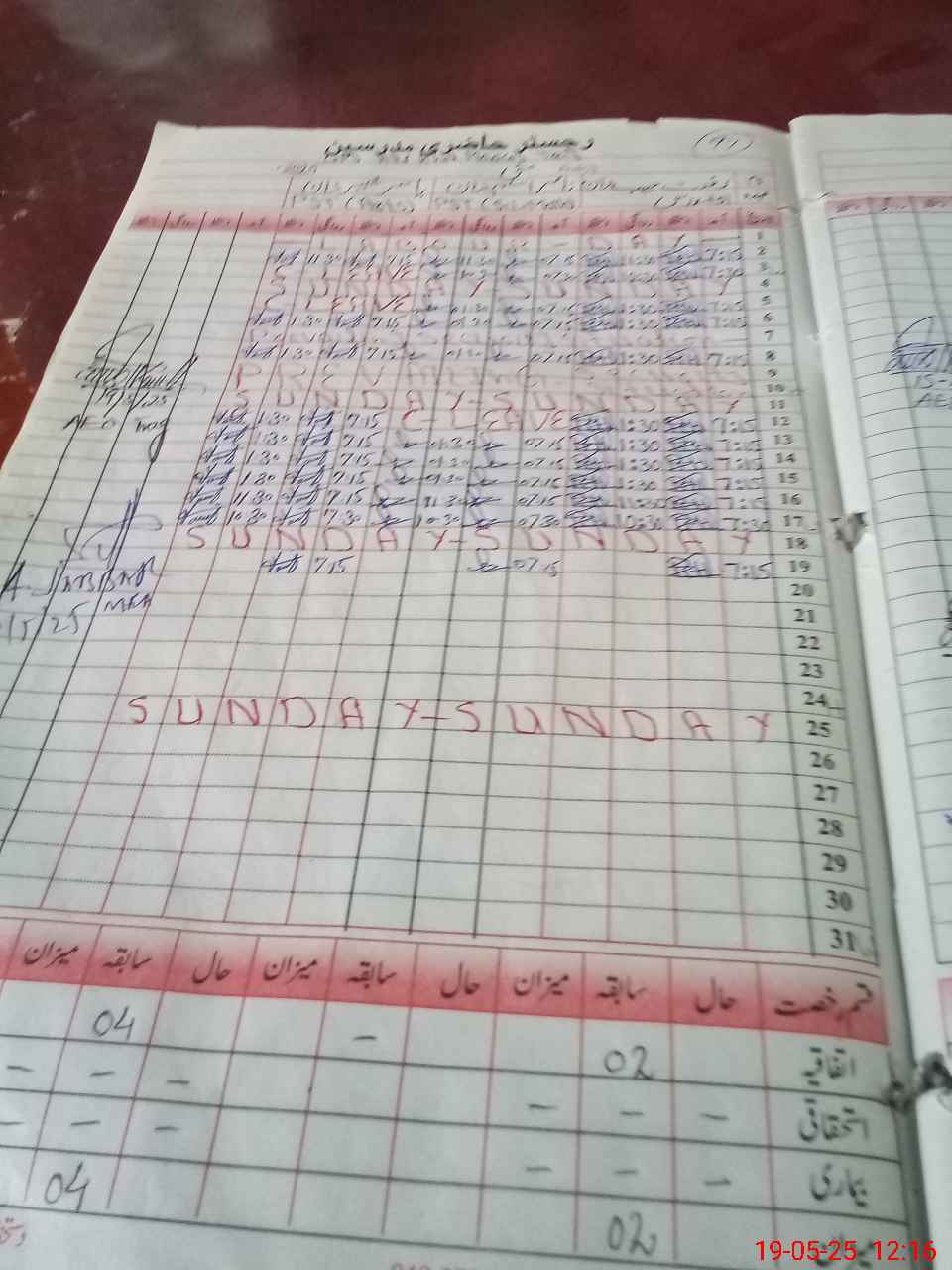 | Leave | Duty | Absent | Maternity | Medical | Ex- Pak |
