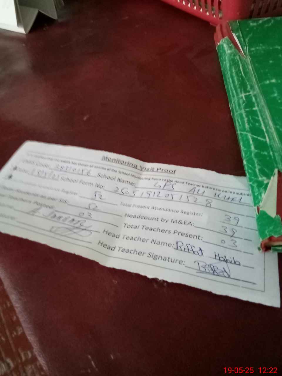 | Attendance Register | Head Teacher | MEA with School | Visit Proof |
