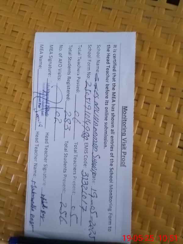 | Attendance Register | Head Teacher | MEA with School | Visit Proof |
