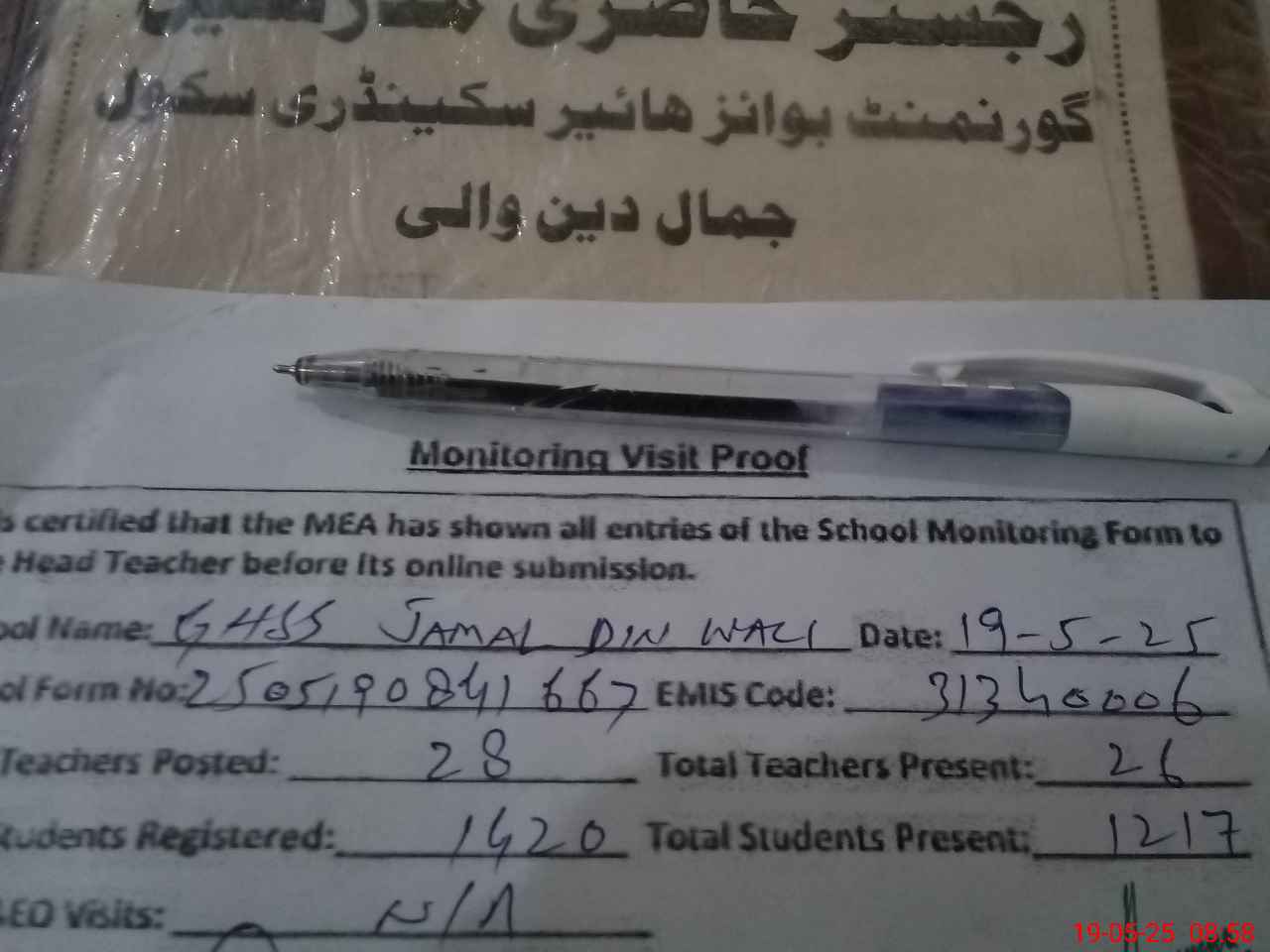 | Attendance Register | Head Teacher | MEA with School | Visit Proof |