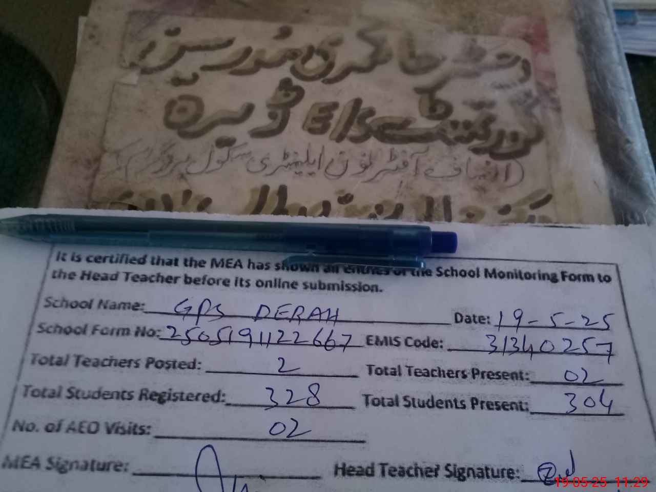 | Attendance Register | Head Teacher | MEA with School | Visit Proof |