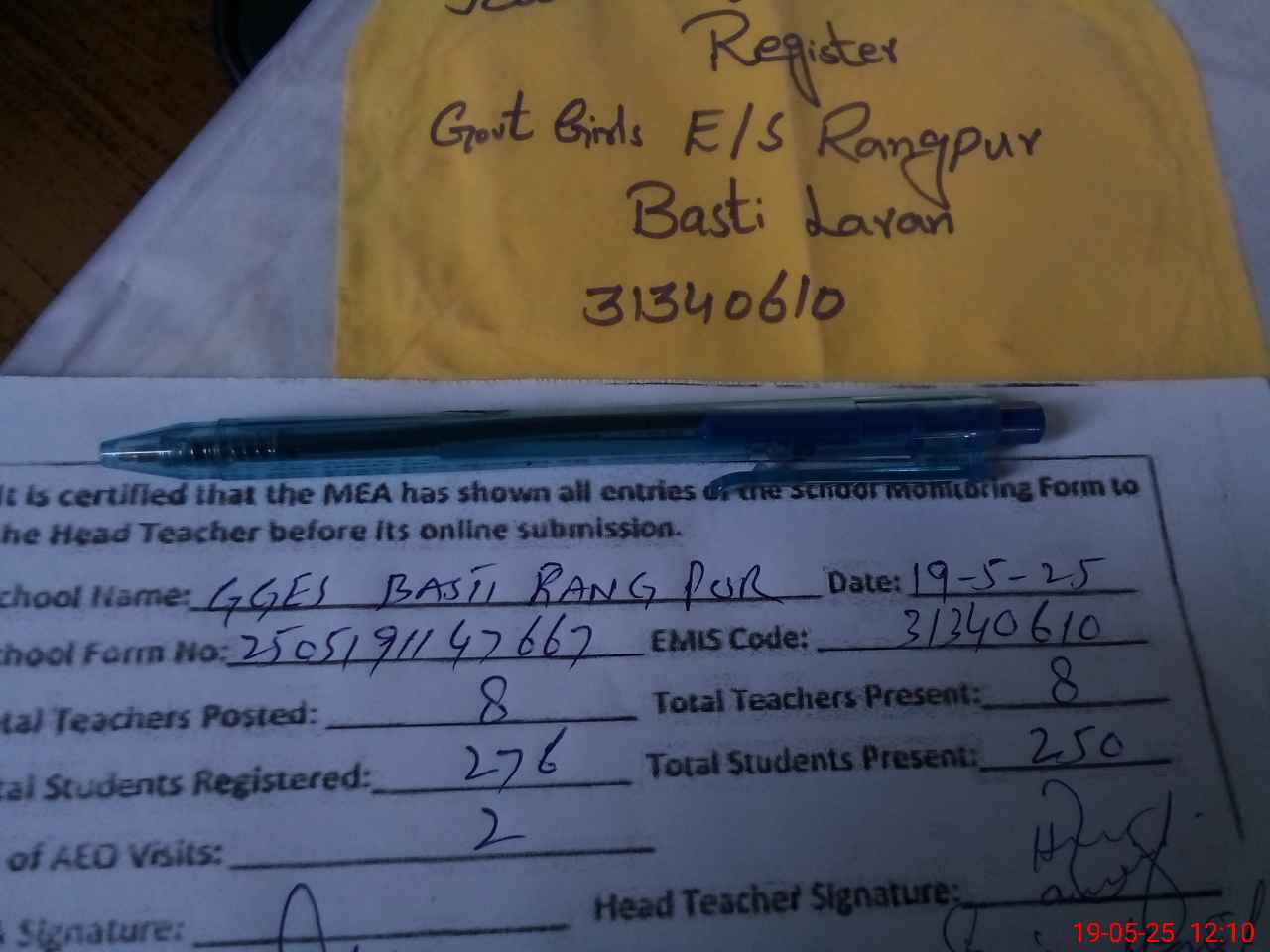 | EMIS Code: 31340610 | Name of School: GGES BASTI RANG PUR LARAN | |||