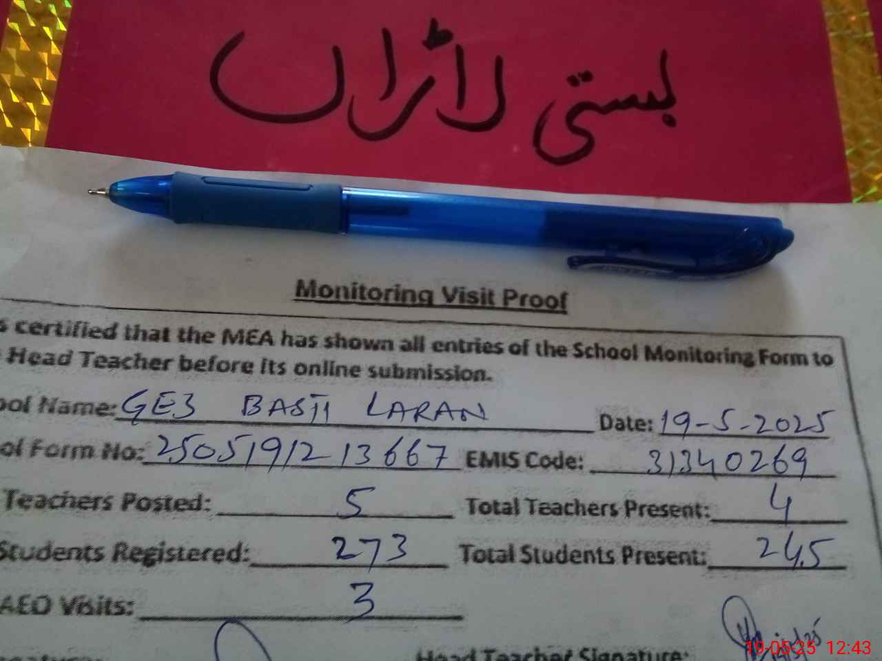 | EMIS Code: 31340269 | Name of School: GES BASTI LARAN | |||