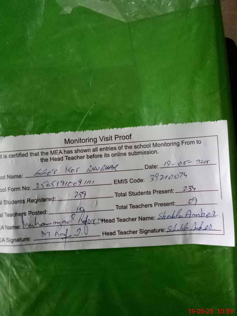| Certified that this School was Inspected by the Undersigned MEA/DMO Today and the Information Stated Above is as Per Record. | |||||