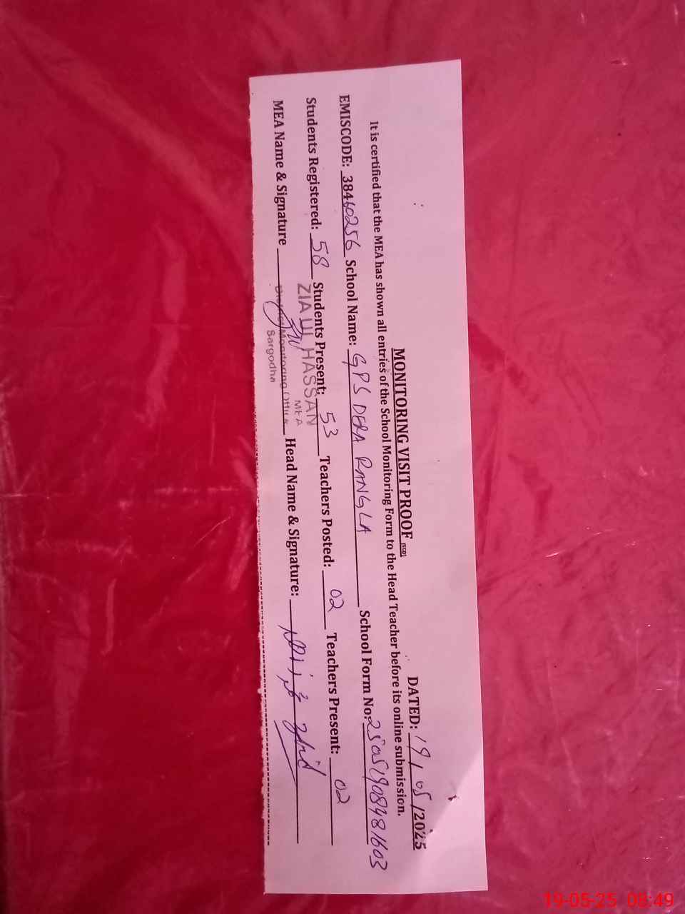 | EMIS Code: 38460256 | Name of School: GPS DERA RANGLA | |||