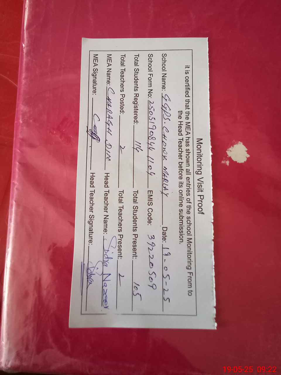 | EMIS Code: 39220509 | Name of School: GGPS CHOWK MARLAY | |||