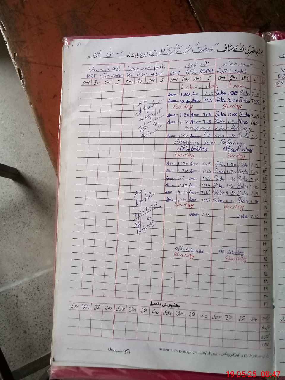 | Name: SI**** NA**** Designation: (School Headmaster's/Headmistress's) PST Phone/Cell Number: 03**** |
