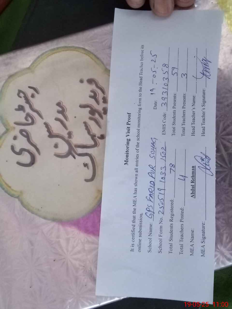 | EMIS Code: 39310358 | Name of School: GPS FARID PUR SOHAG | |||