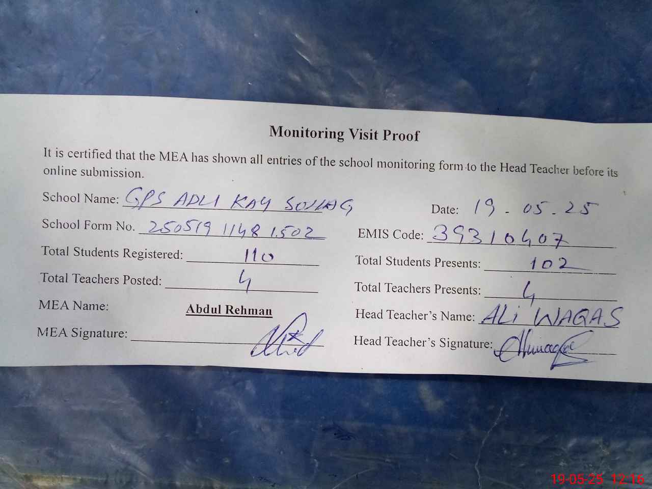 | EMIS Code: 39310407 | Name of School: GPS ADLI KAY SOHAG | |||