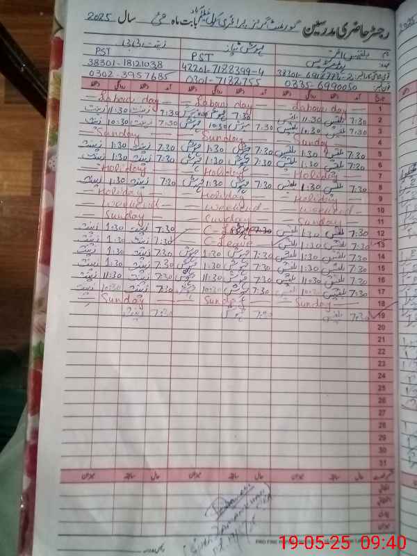 | CNIC | Full Name | Designation | R/C | Absence During Last Calender Month |