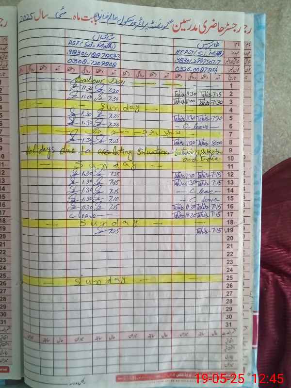 | 38**** | Mu**** Sa**** | PST | Regular | 0 | 0 | 0 | 0 | 0 | 0 | 0 | 0 | 0 | Exam Duty |