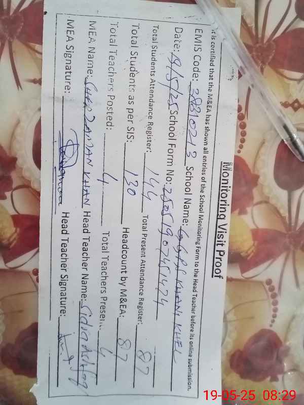 | EMIS Code: 38310213 | Name of School: GGPS KHANI KHEL | |||