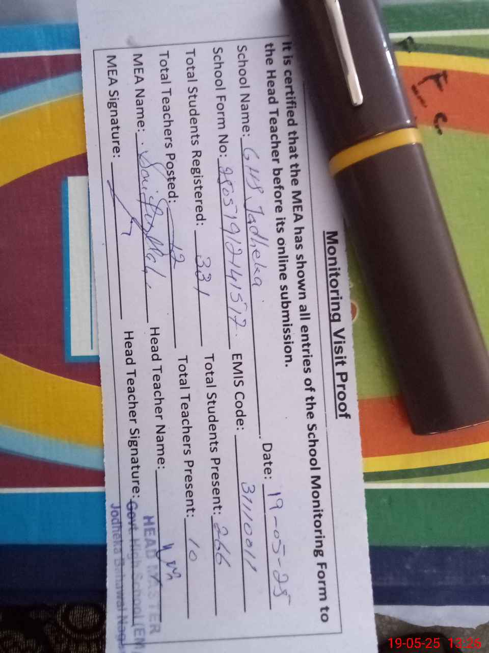 | EMIS Code: 31110011 | Name of School: GHS JODHEKA | |||