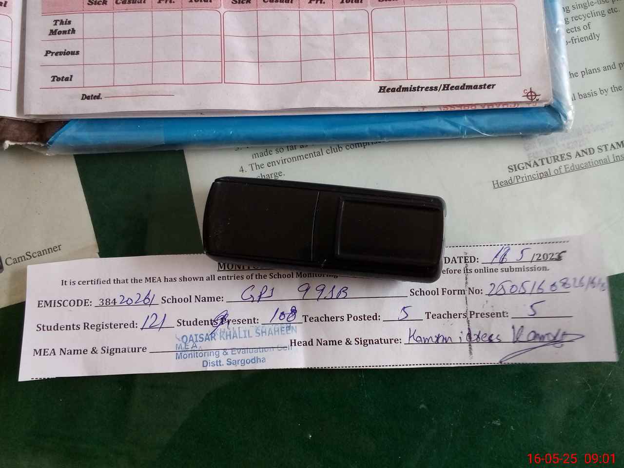 | Attendance Register | Head Teacher | MEA with School | Visit Proof |