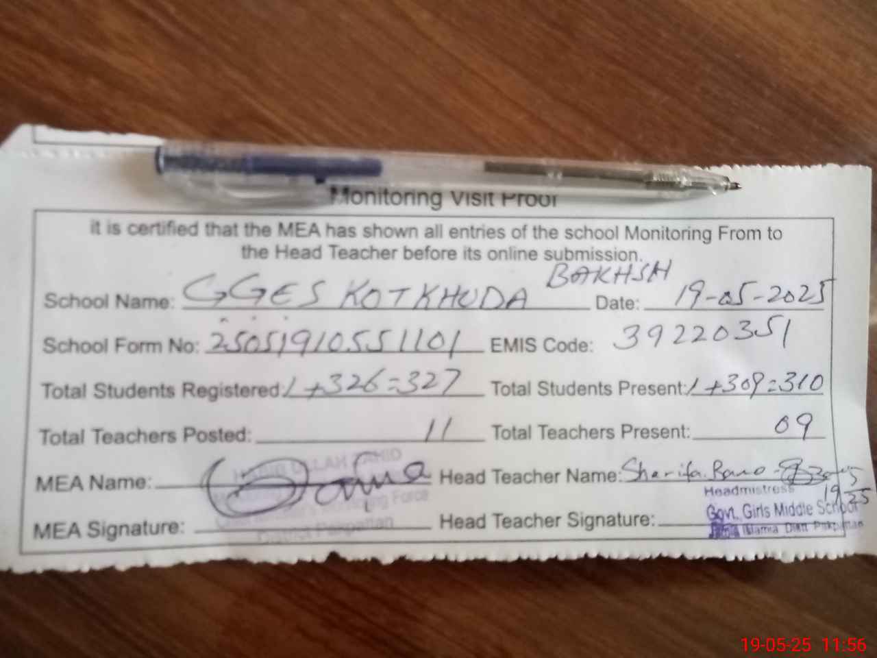 | EMIS Code: 39220351 | Name of School: GGES KOT KHUDA BUKSH | |||