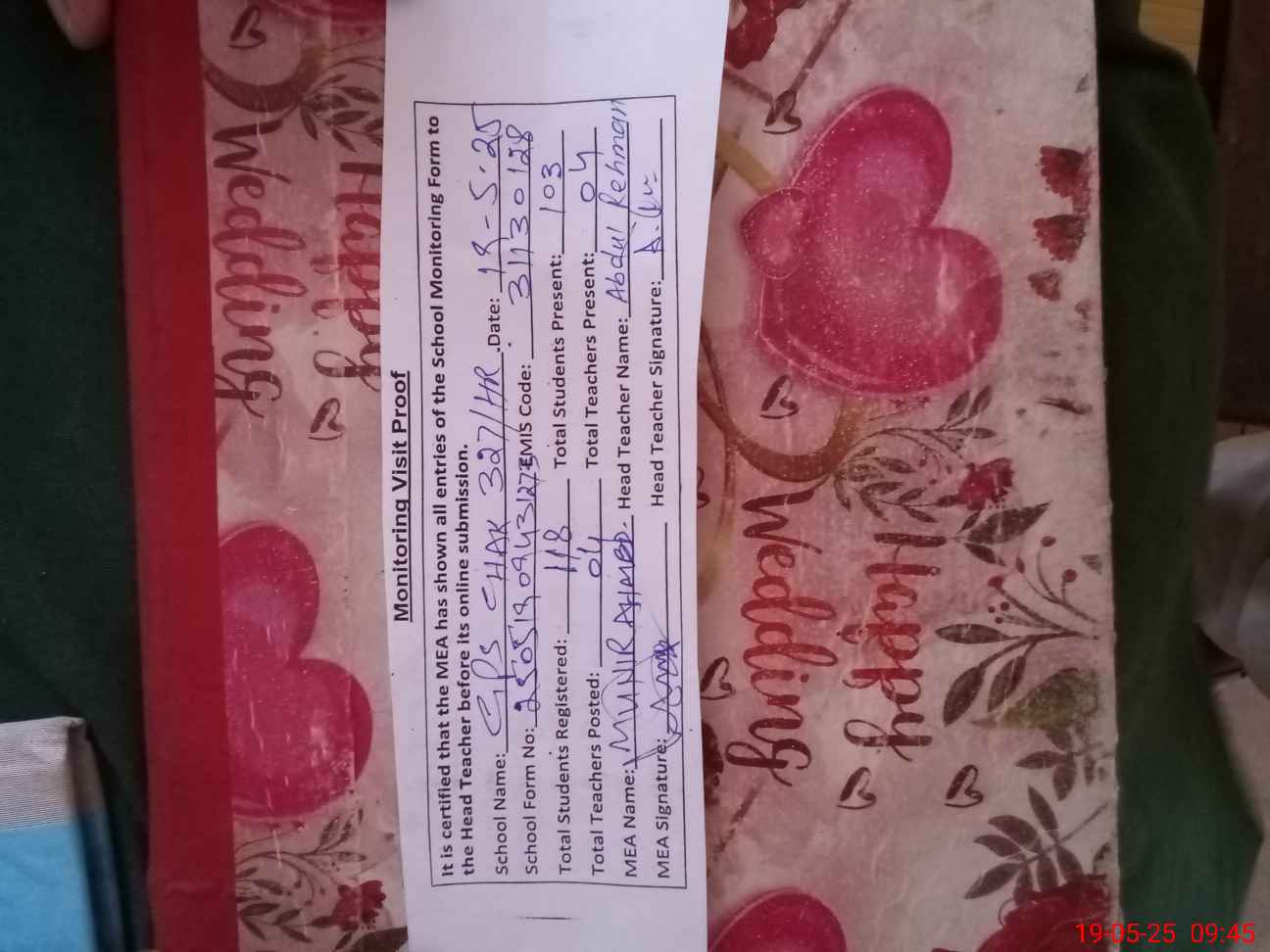 | EMIS Code: 31130128 | Name of School: GPS CHAK NO 327/HR | |||
