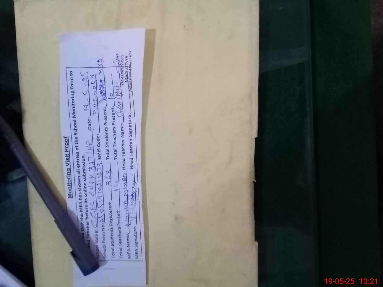 | Attendance Register | Head Teacher | MEA with School | Visit Proof |